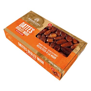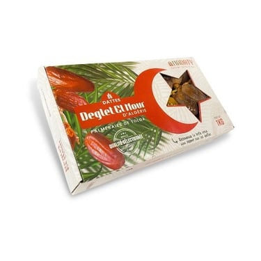 The Deglet Nour, prized for its exceptional quality, thrives in the unique oases of the Algerian Sahara. Here, the intense tropical sun warms the palm tops while pure, fresh groundwater nourishes their roots, creating a perfect harmony of climate and soil. The result is a date of unmatched flavor and texture, celebrated worldwide for its exquisite taste.